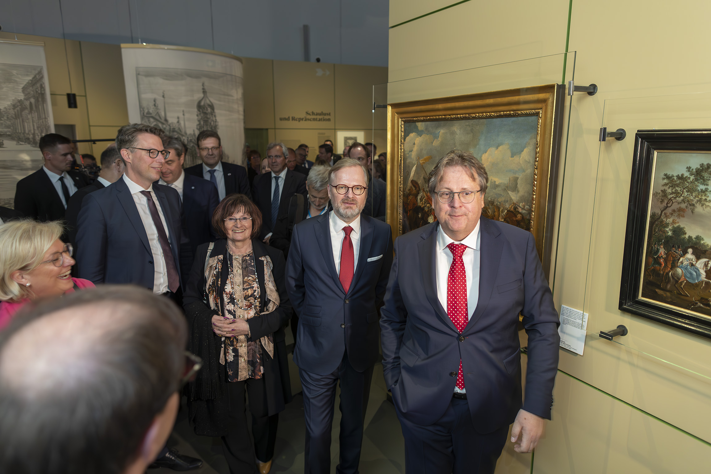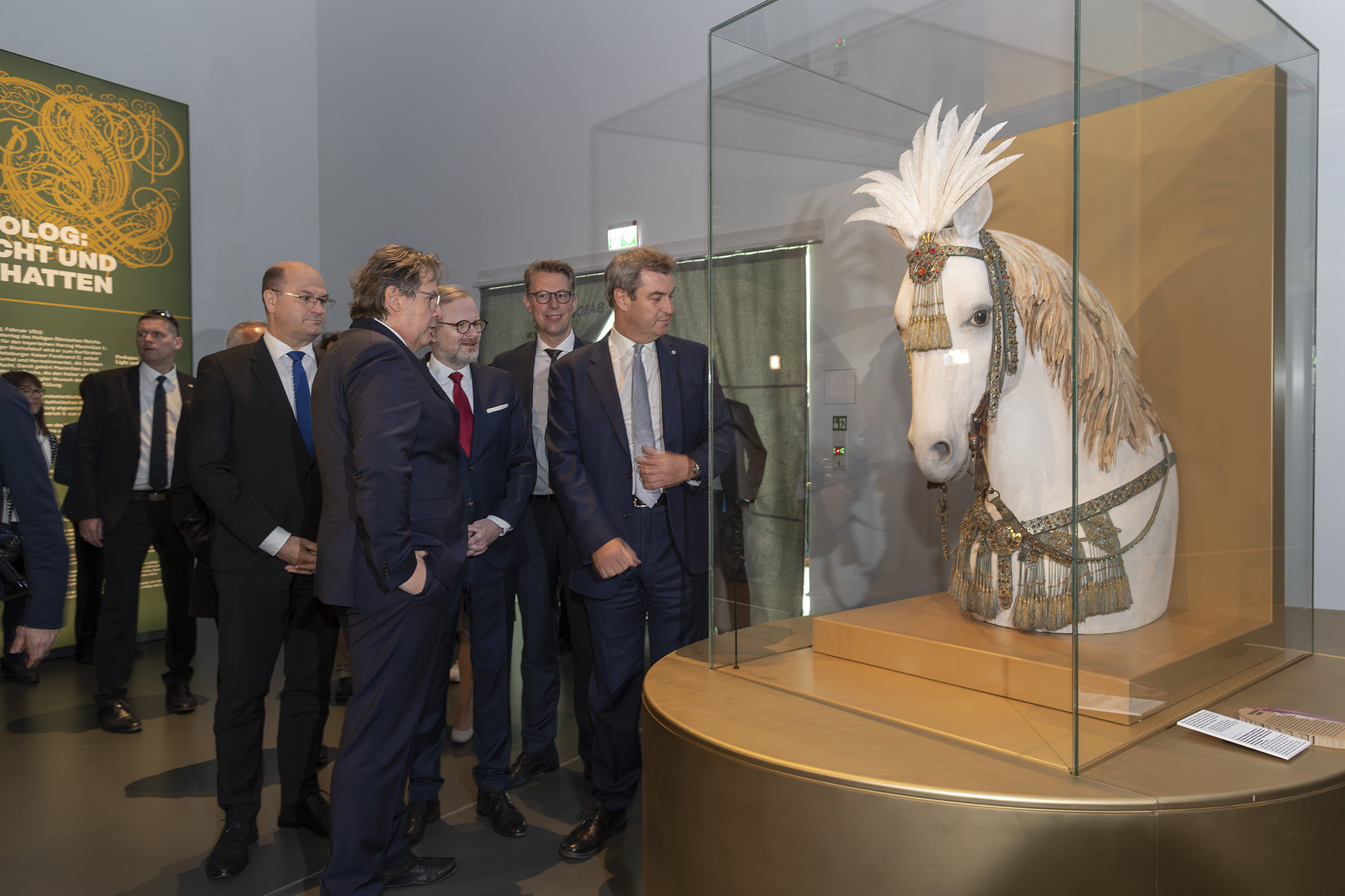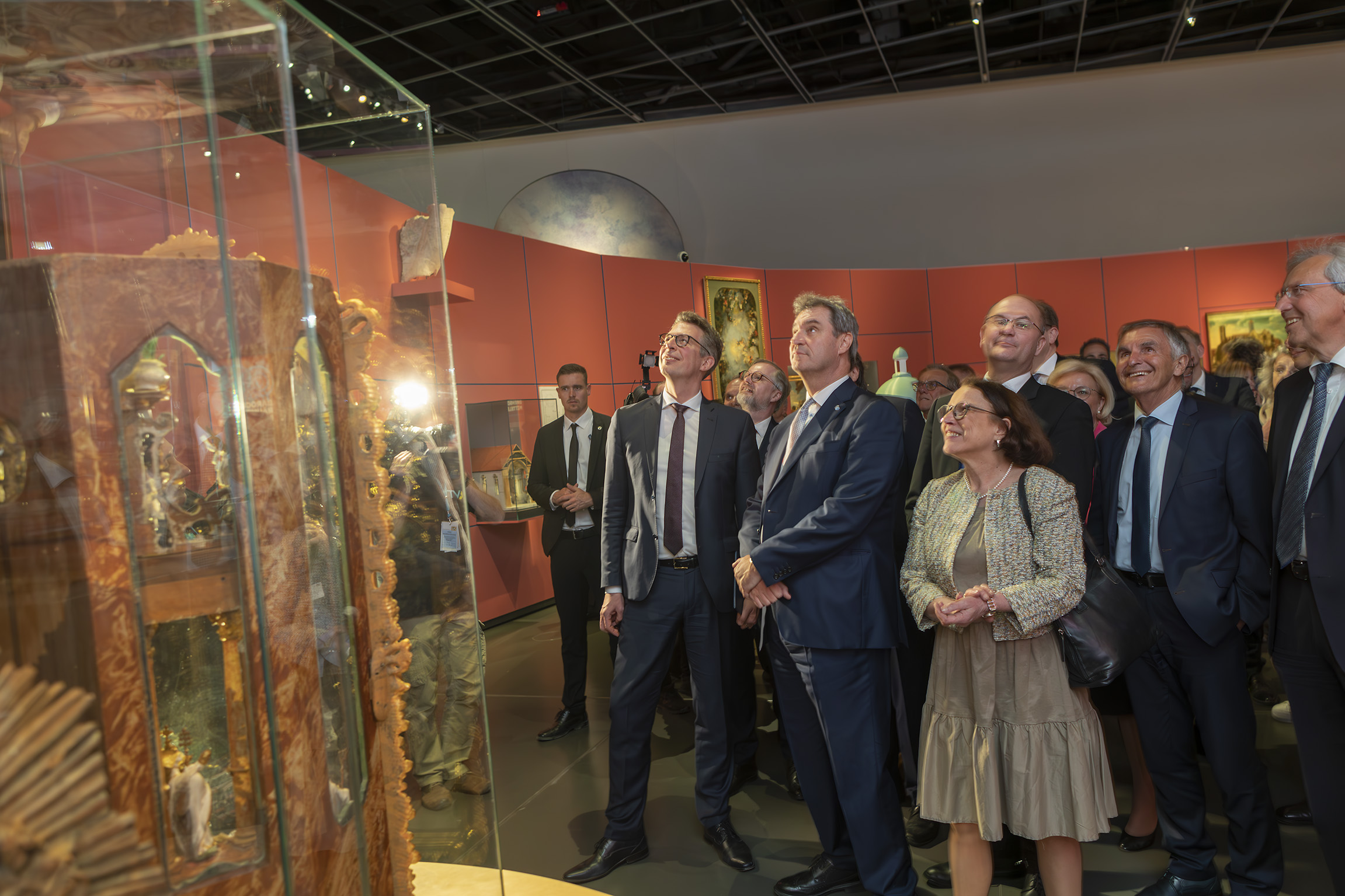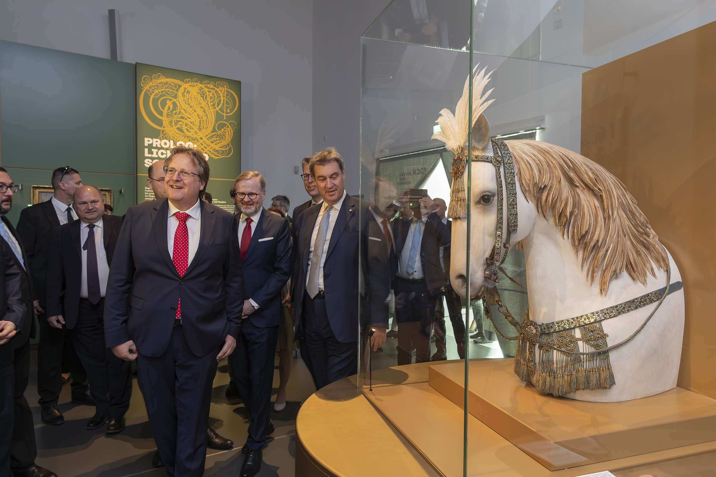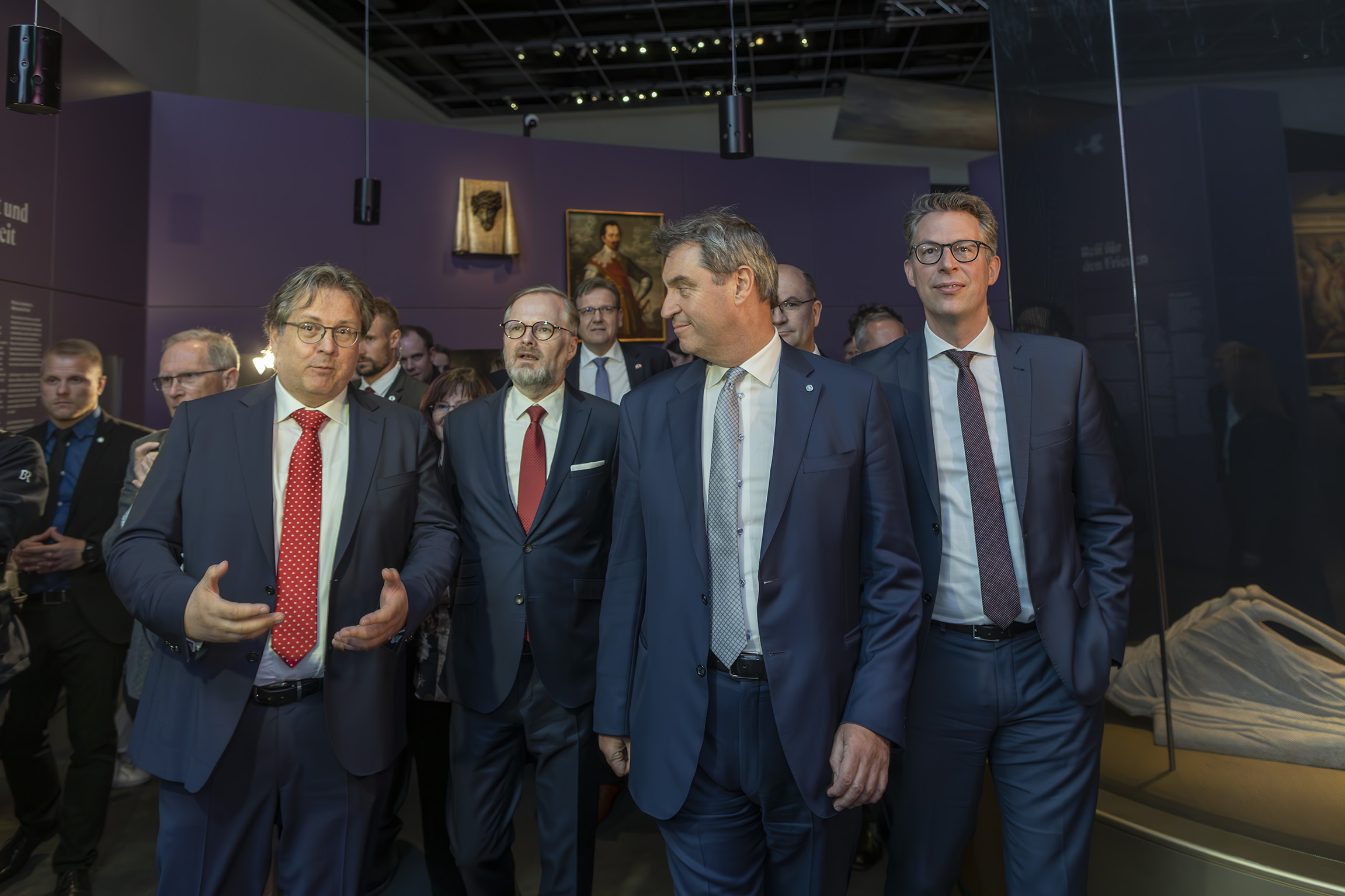 Markus Blume, Bayerischer Staatsminister für Wissenschaft und Kunst begrüßte, Martin Baxa, Minister für Kultur der Tschechischen Republik hielt ein Grußwort, PhDr. Michal Lukeš, Generaldirektor des Nationalmuseums Prag und Dr. Richard Loibl, Direktor des Hauses der Bayerischen Geschichte, führten kurz in die Ausstellung ein.