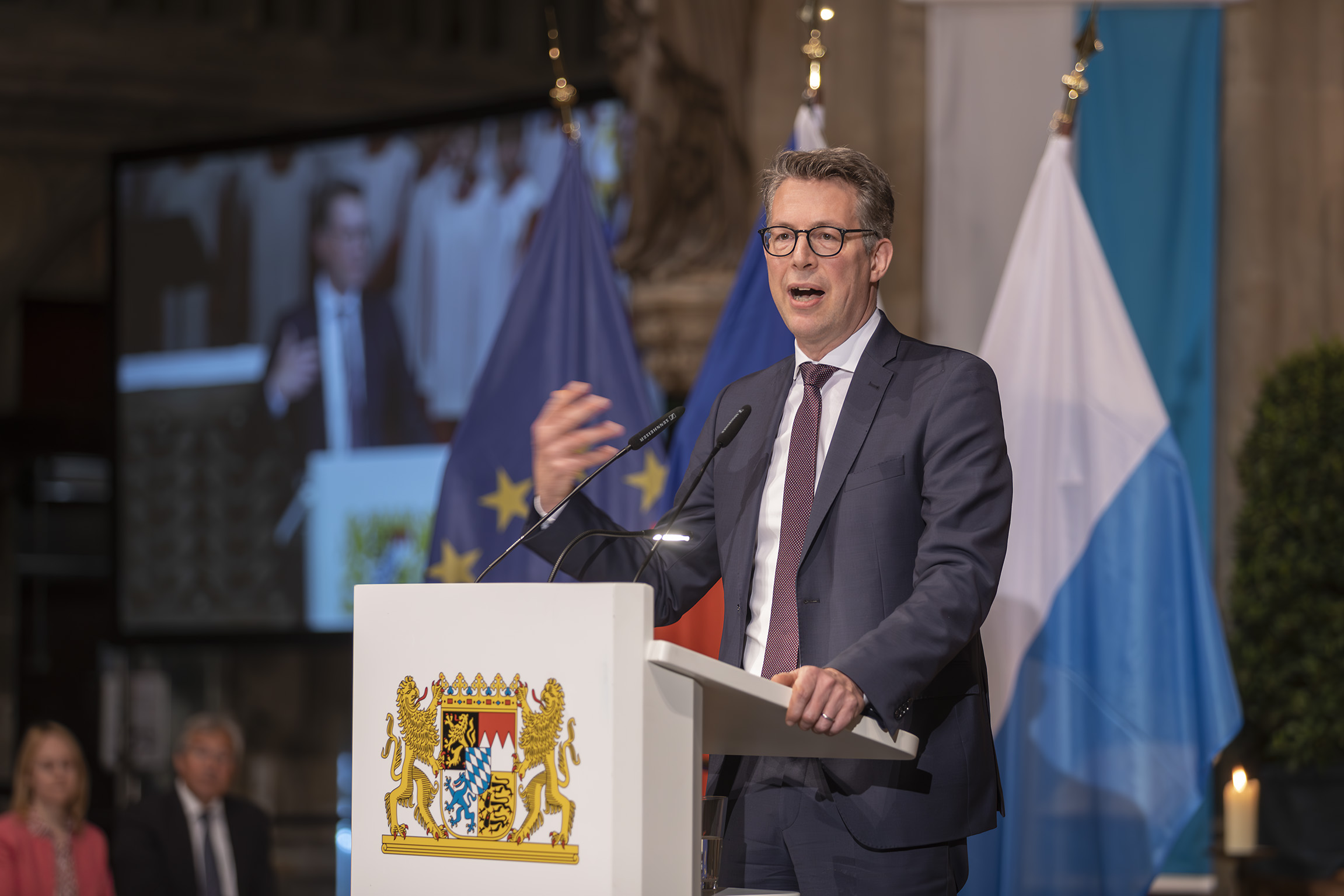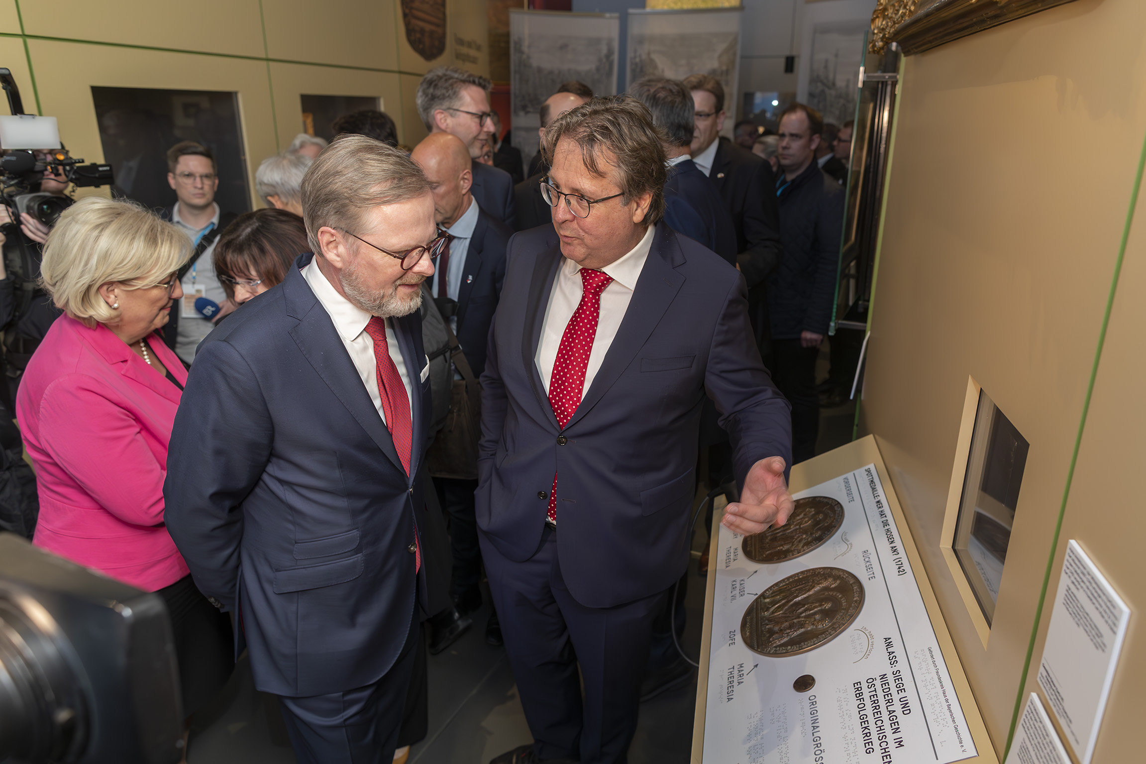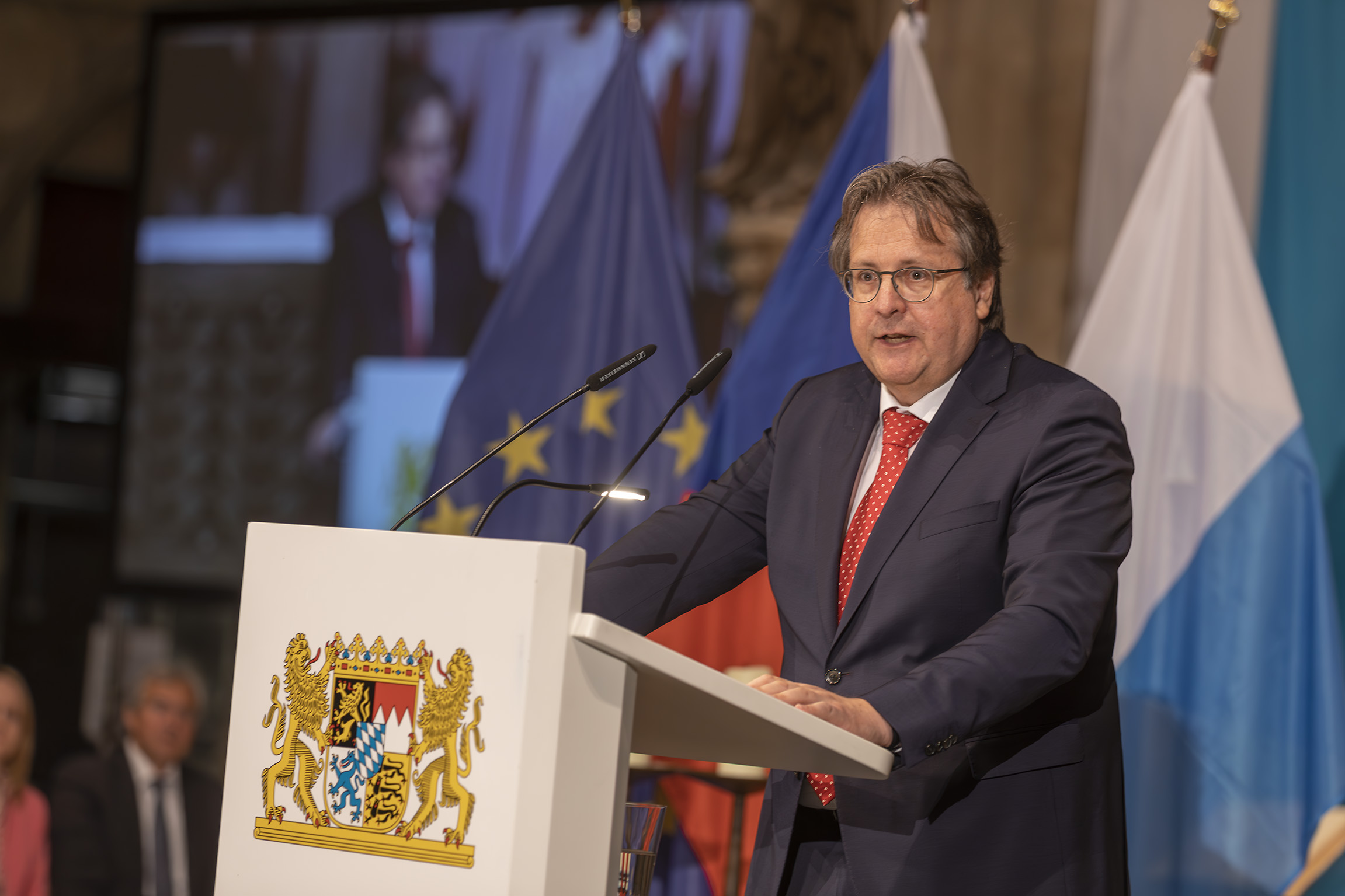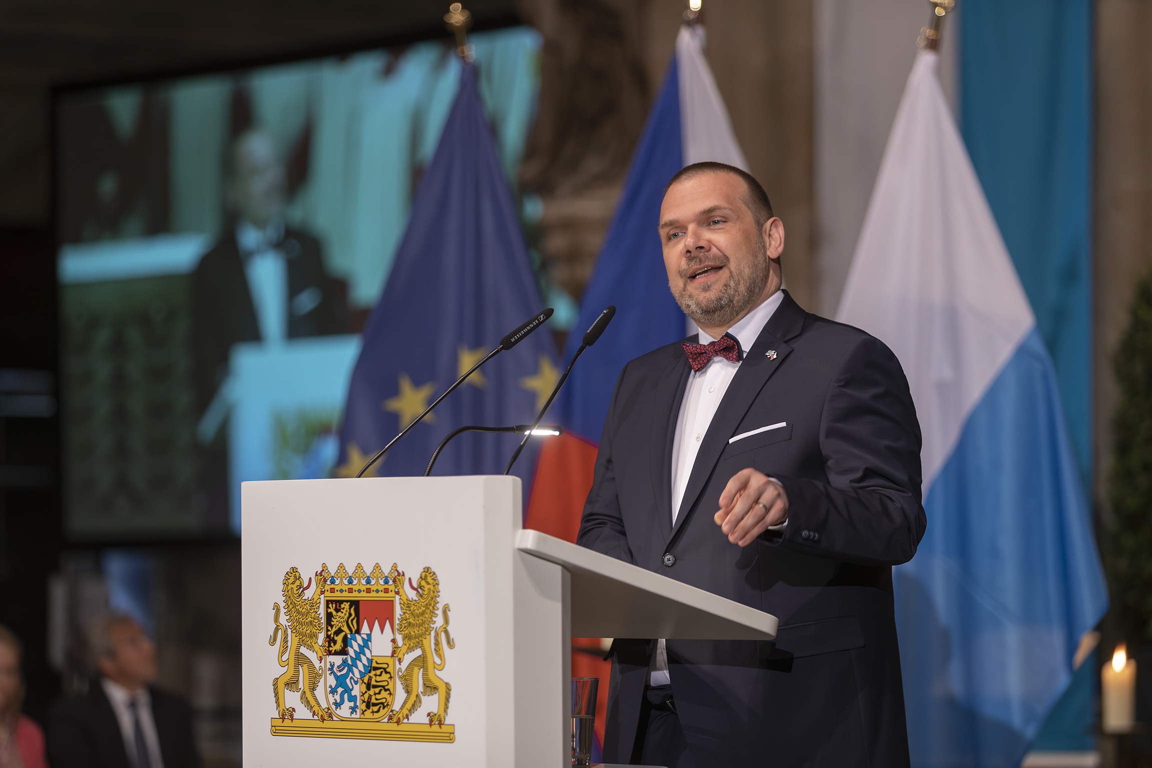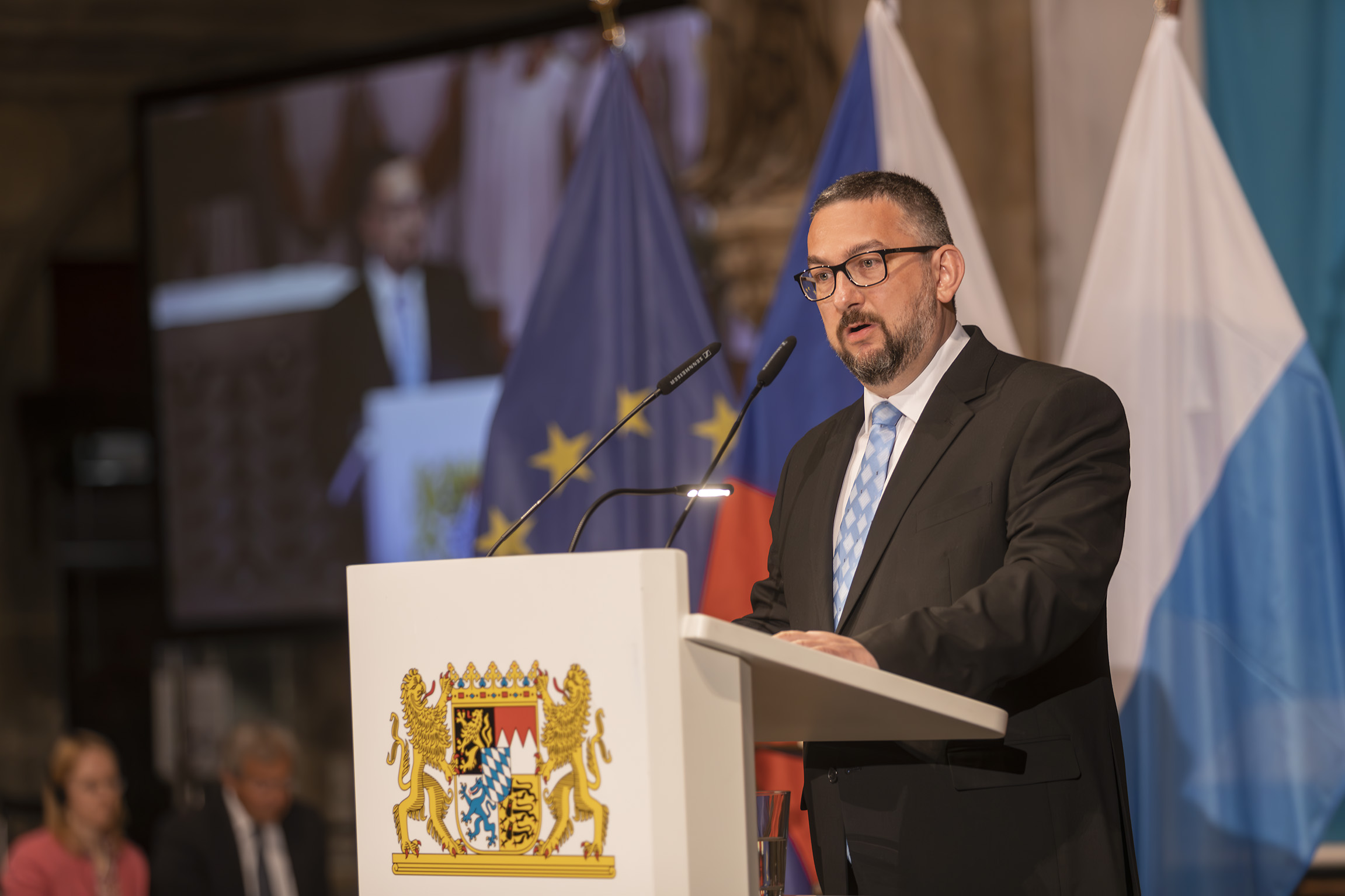 Markus Blume, Bayerischer Staatsminister für Wissenschaft und Kunst begrüßte, Martin Baxa, Minister für Kultur der Tschechischen Republik hielt ein Grußwort, PhDr. Michal Lukeš, Generaldirektor des Nationalmuseums Prag und Dr. Richard Loibl, Direktor des Hauses der Bayerischen Geschichte, führten kurz in die Ausstellung ein.