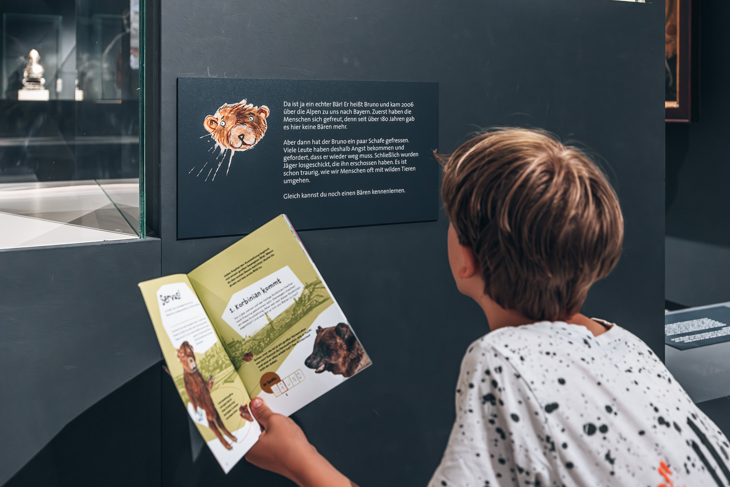 Der freundliche Bär Tassi führt durch die Ausstellung und erklärt kindgerecht deren Themen. Gemeinsam mit den Kindern ist Tassi dem Dieb Kalle auf der Spur und sie lösen zusammen viele spannende Rätsel rund um Tassilo, Korbinian und den Bären.