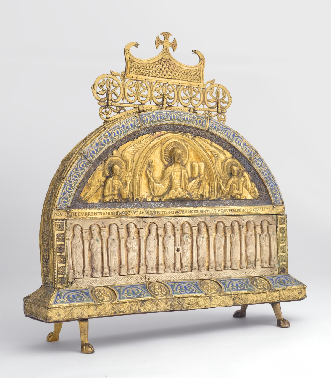 Ihren Höhepunkt erlebte die agilolfingische Herrschaft unter Herzog Tassilo III. In seiner Regierungszeit von 748 bis 788 gründete er bedeutende Klöster wie Kremsmünster und Frauenchiemsee. Er saß Versammlungen der bayerischen Kirche vor und erließ Gesetze, was sonst nur Könige taten. Seine Eigenständigkeit gegenüber dem Frankenreich fand auch künstlerischen Ausdruck: Der Hofschule des dortigen Herrschers Karl stand eine eigene tassilonische Kunst gegenüber. Ihr herausragendes Stück ist der Tassilo-Liutpirc-Kelch aus Kremsmünster. Er ist ein Weltkunstwerk, das schönste und größte Artefakt seiner Art und Zeit. Gedacht war der prunkvolle Messkelch wohl für den 774 neu geweihten Salzburger Dom, der Krönungs- und Grabeskirche der Agilolfinger hätte werden können. In der Schatzkammer der Landesausstellung sind weitere faszinierende Goldschmiedearbeiten, Buchmalereien und Steinmetzkunst vertreten.
