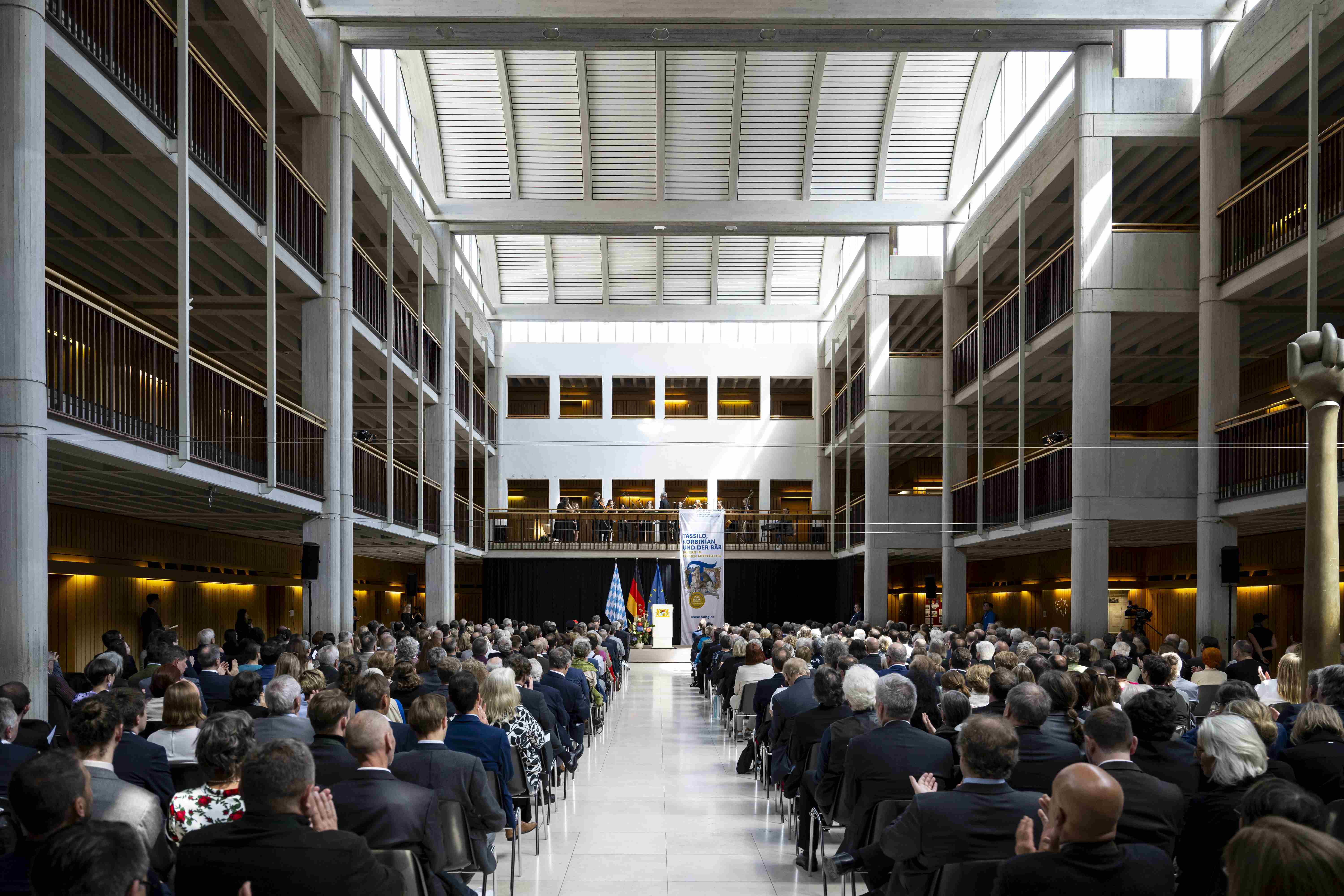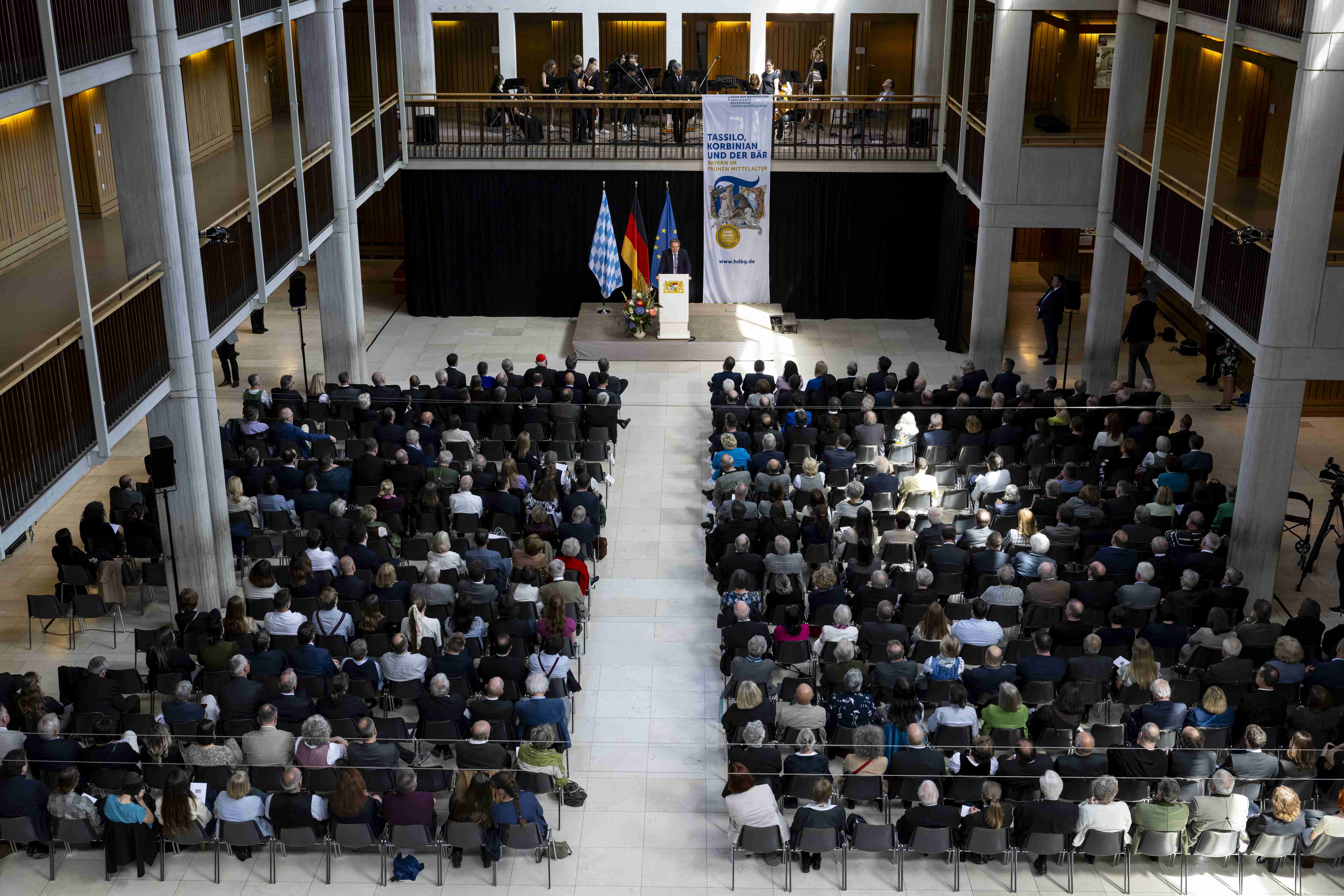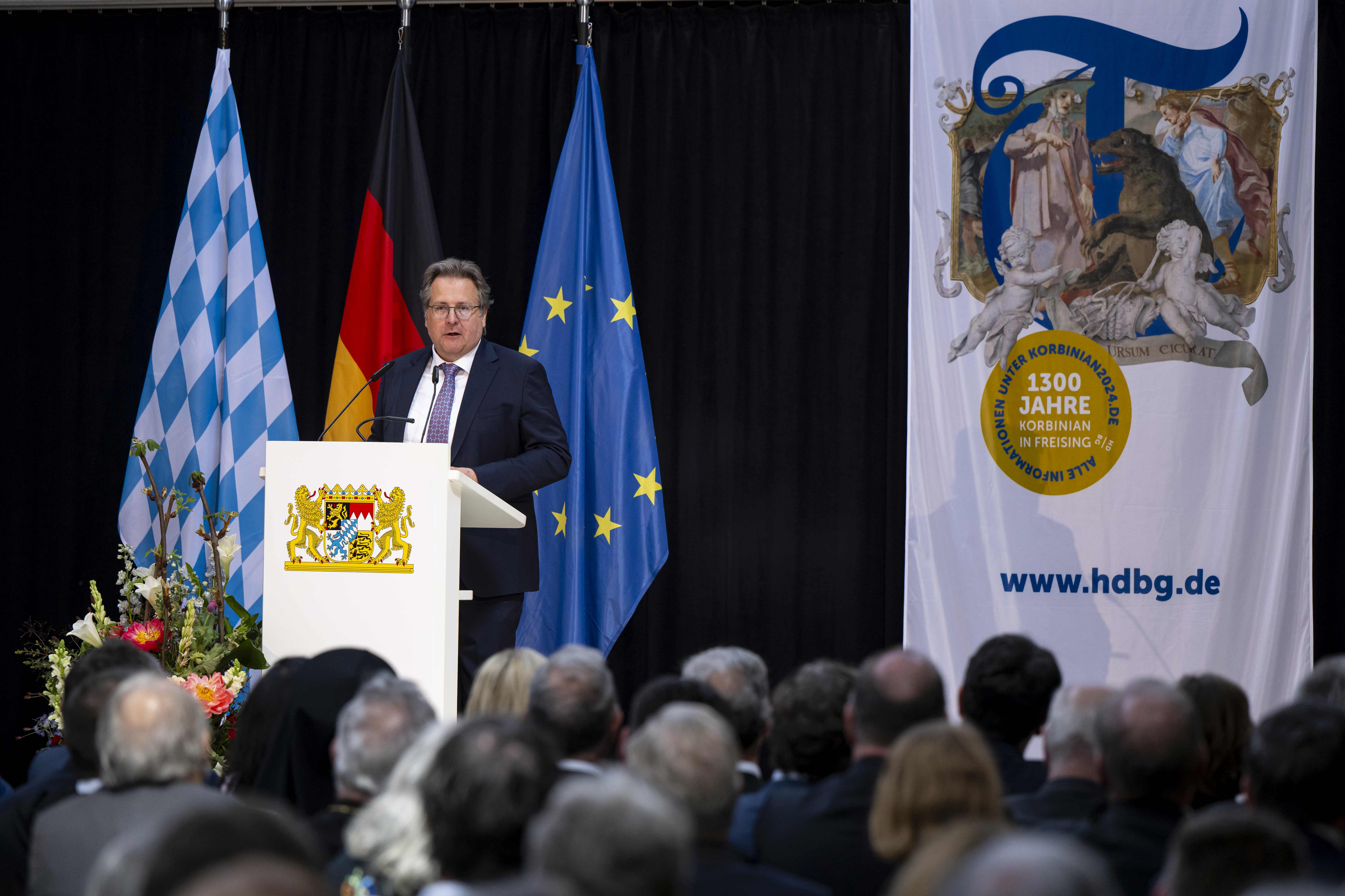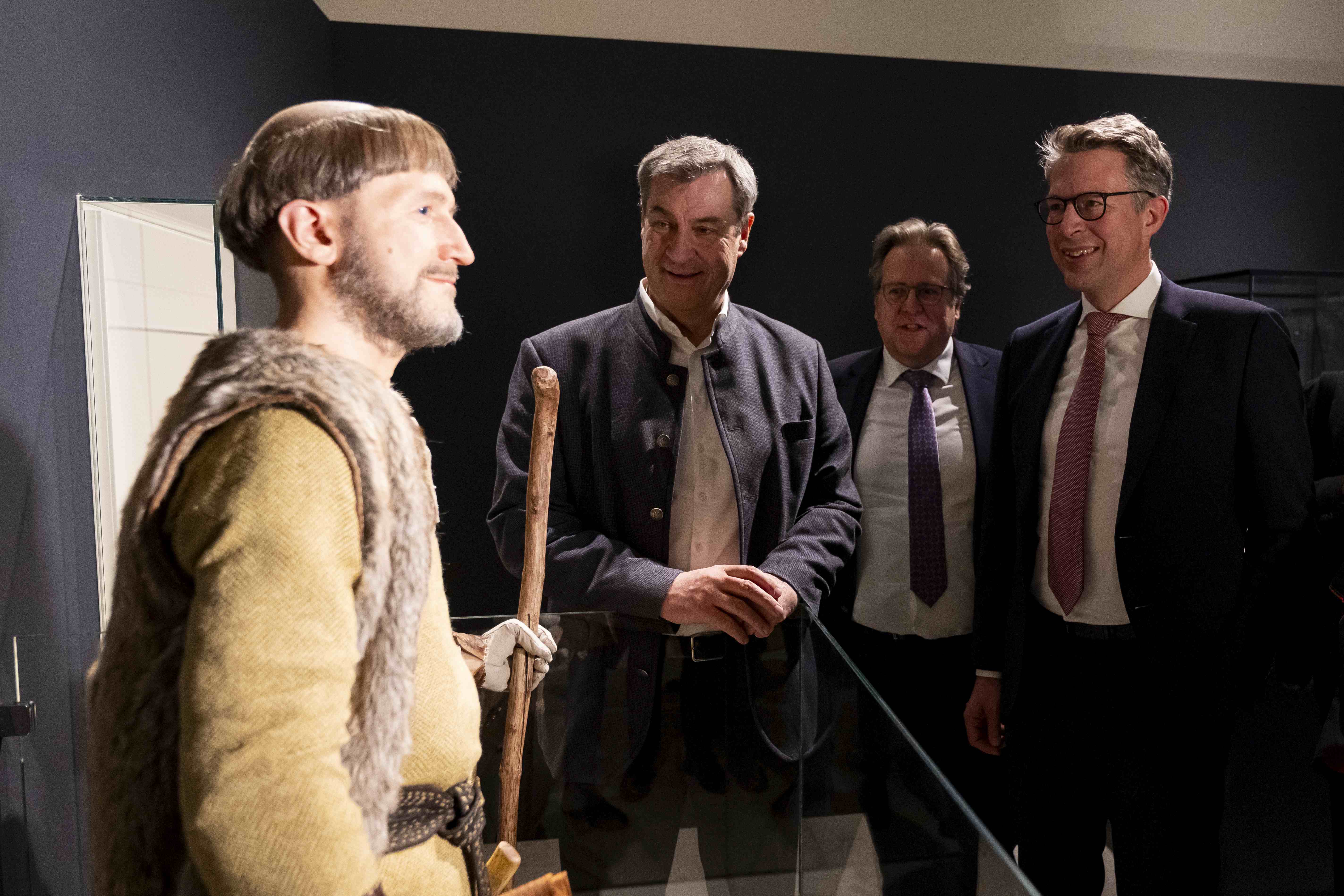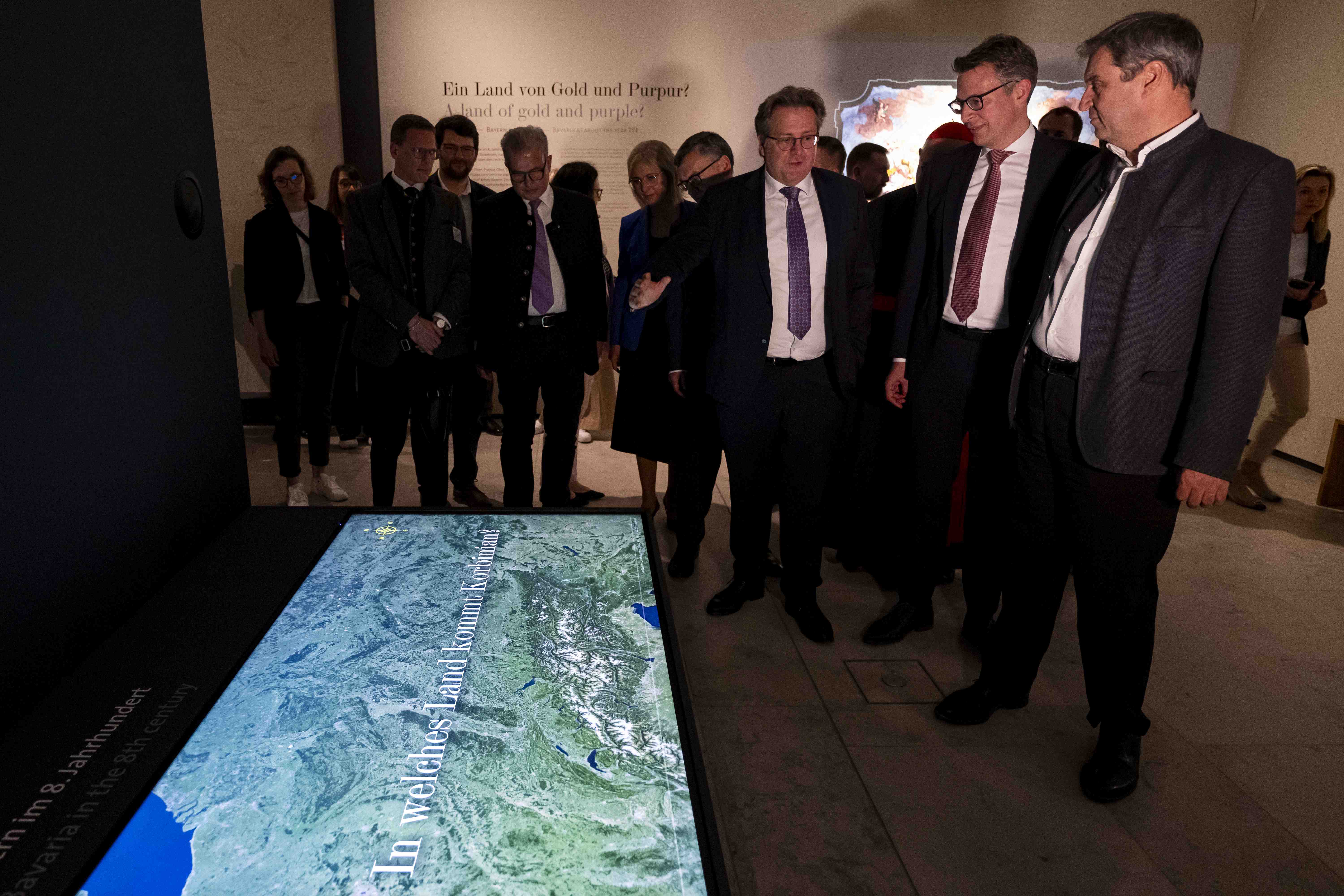 Der Bayerische Ministerpräsident Dr. Markus Söder, MdL, S.Em. Kardinal Reinhard Marx und der Bayerische Staatsminister für Wissenschaft und Kunst Markus Blume eröffneten feierlich die Bayerische Landesausstellung 2024 im Dom-Gymnasium in Freising.