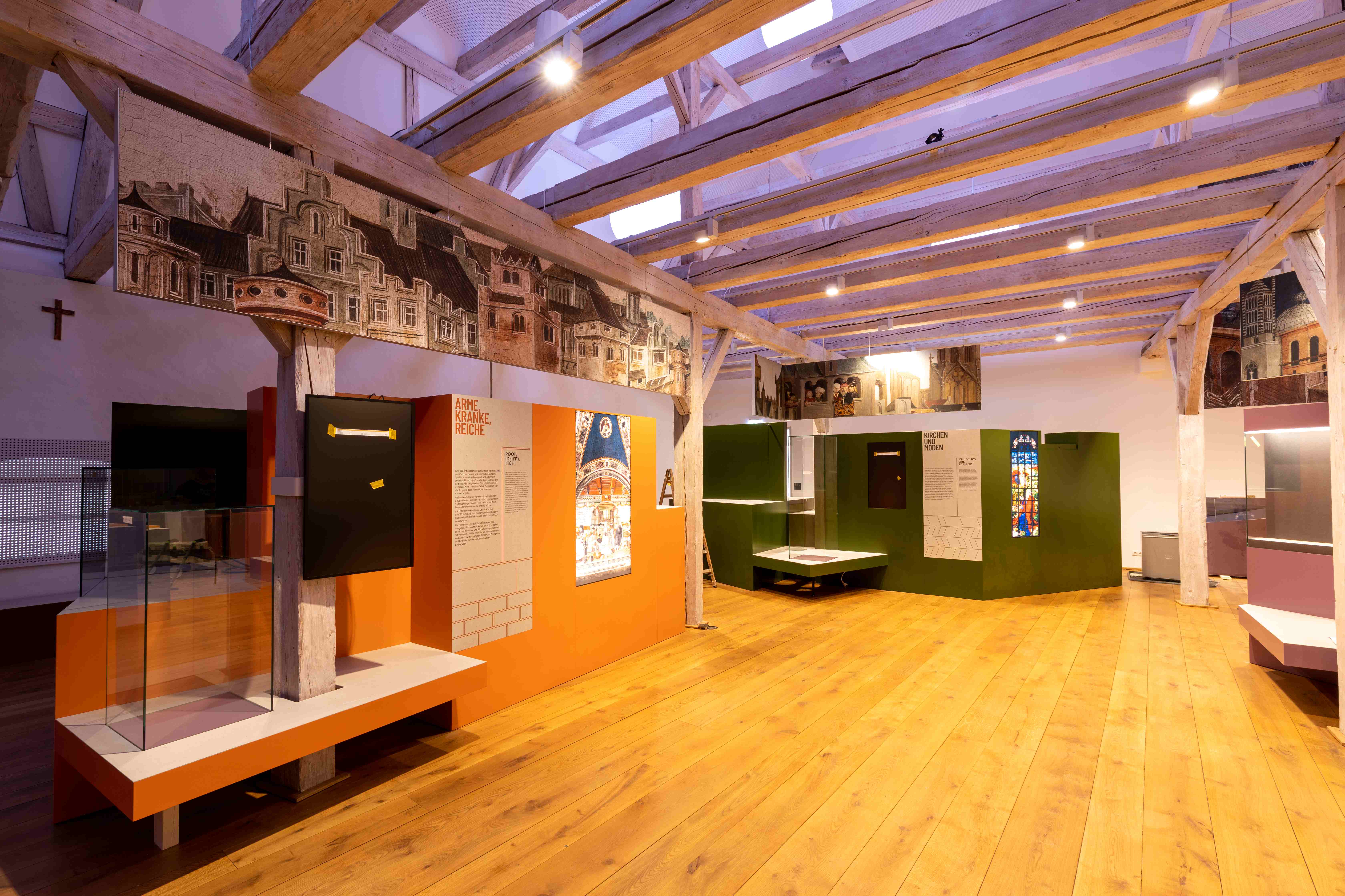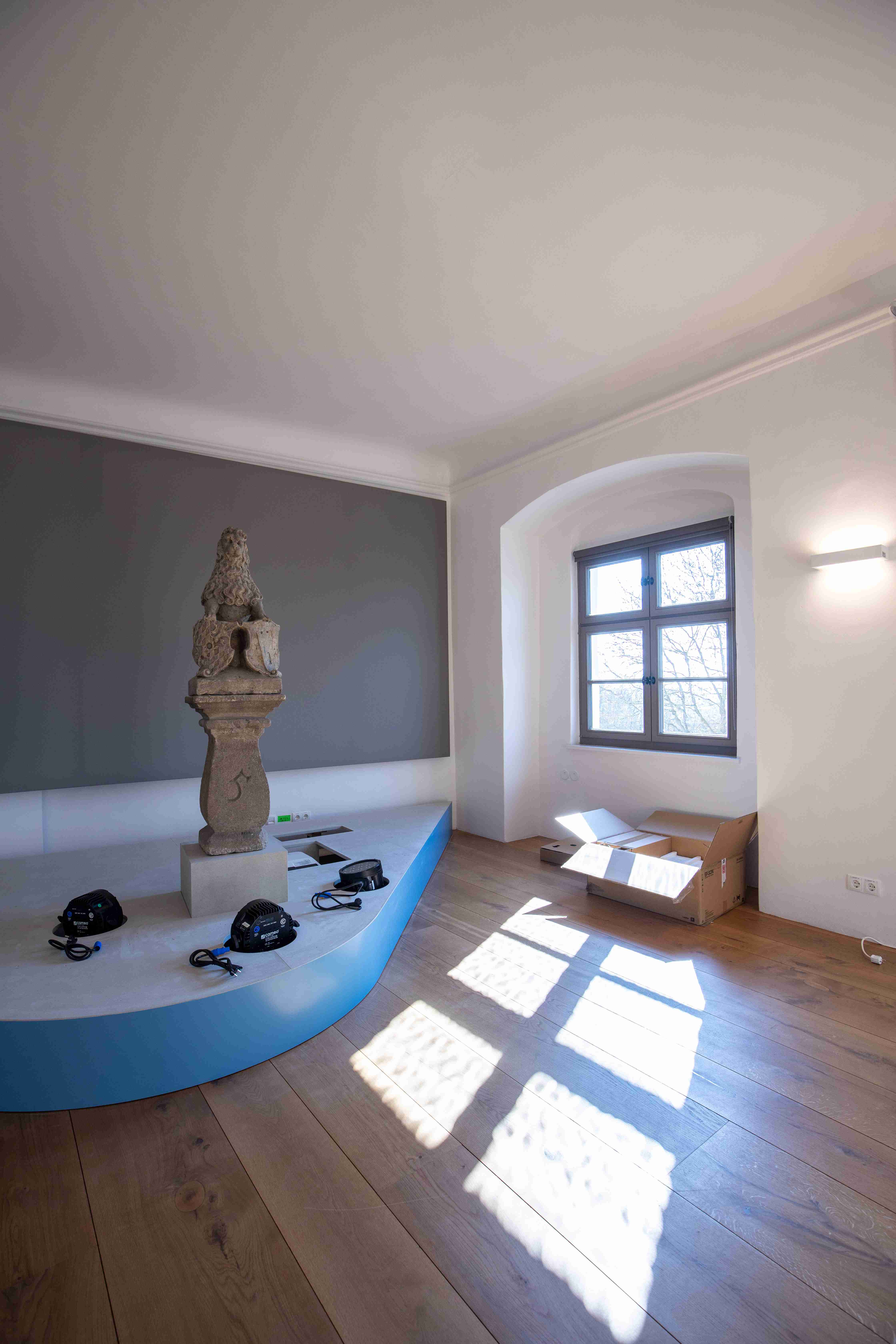 Die etwa 900 Quadratmeter Ausstellungsfläche in den historischen Räumen des Wittelsbacher Schlosses sind ausgestattet mit Einbauten und Ausstellungsmodulen. Alles wartet auf Objekte und Besucher. Fast fertig ist also die Ausstellung: