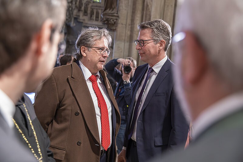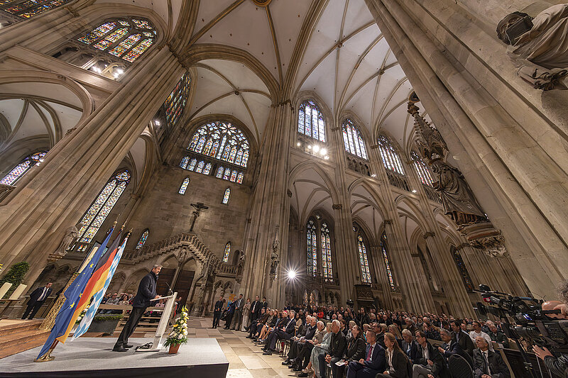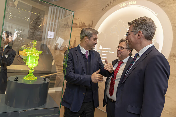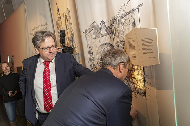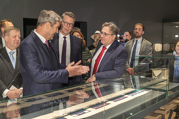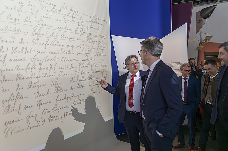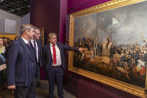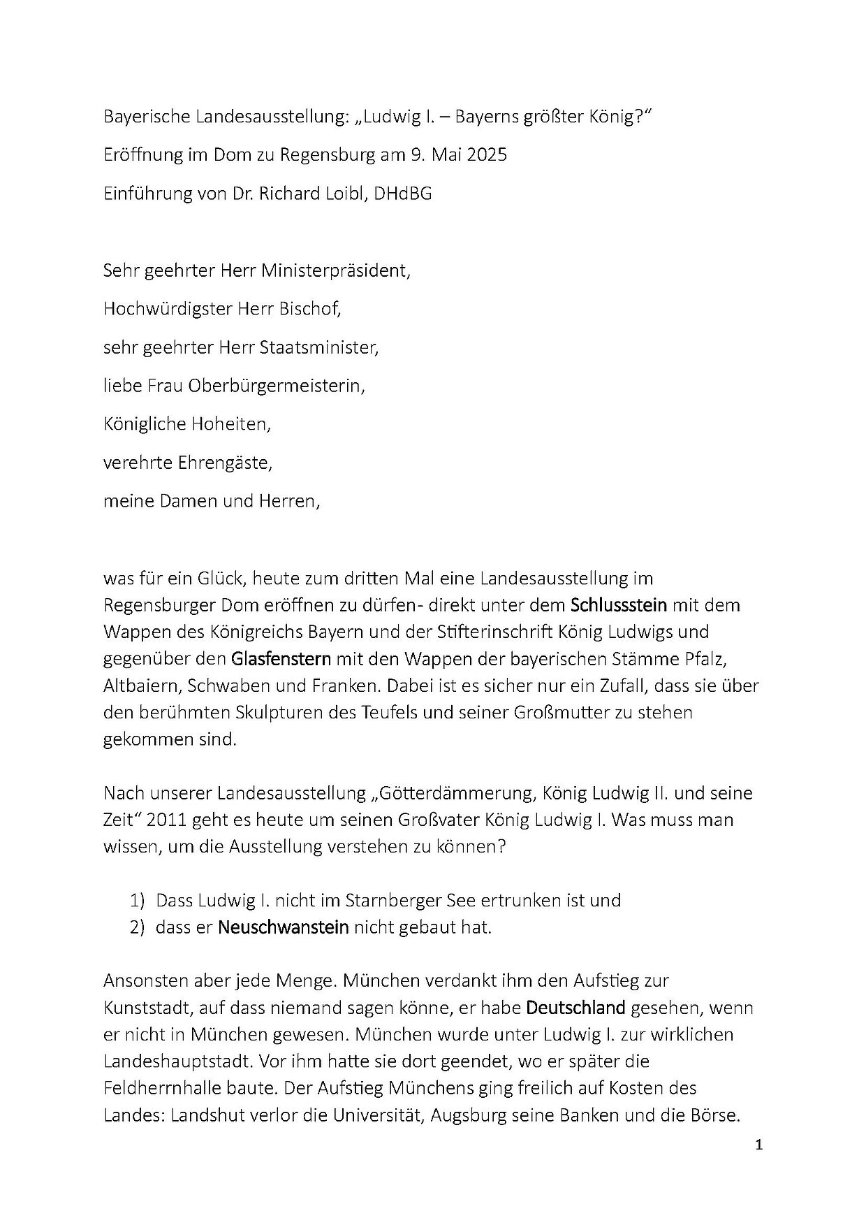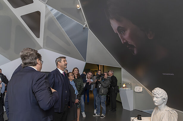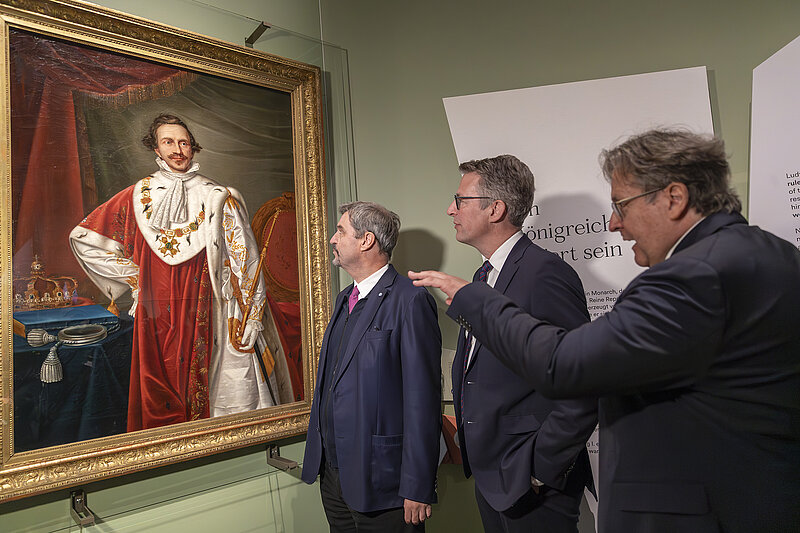 Dr. Rudolf Voderholzer, der Bayerische Staatsminister für Wissenschaft und Kunst Markus Blume, sowie Regensburgs Oberbürgermeisterin Getrud Maltz-Schwarzfischer und der Direktor des Hauses der Bayerischen Geschichte, Dr. Richard Loibl, eröffneten am Freitag den 9. Mai 2025 gemeinsam die Bayerische Landesausstellung „Ludwig I. - Bayerns größter König?" im Dom St. Peter. Beim anschließenden Rundgang durch die Ausstellung tauchten die Gäste in den Wandel Bayerns zu Zeiten Ludwigs I. im Haus der Bayerischen Geschichte in Regensburg ein.