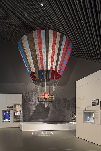 Der Filmballon ist übrigens in der Dauerausstellung im Haus der Bayerischen Geschichte zu sehen. Zur Filvorführung begrüßt das Haus der Bayerischen Geschichte Günter Wetzel: er floh 1979 mit seiner Familie und einer weiteren Familie mit dem selbstgebauten Heißluftballon über die innerdeutsche Grenze und landete in der Nähe von Naila.