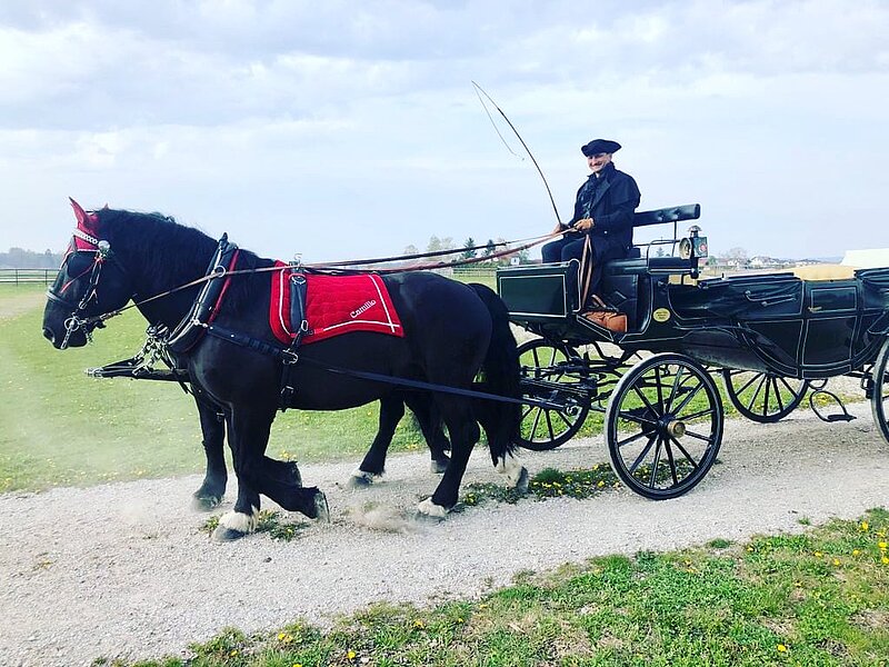 Der Trachten- und Schützenzug mit über 9.000 Mitwirkenden zieht am 21. September von 10.00 bis 12.00 Uhr vom Max II Monument durch die Münchner Innenstadt auf das Oktoberfest, rund 7 Kilometer Wegstrecke gilt es für die Teilnehmerinnen und Teilnehmer zu bewältigen. König Ludwig I. und Königin Therese von Bayern fahren mit der Zugnummer 52 b in einer prachtvoll geschmückten Kutsche mit und werden musikalisch mit der Zugnummer 52 a von der Blaskapelle Grainet aus dem Landkreis Freyung im Bayerischen Wald begleitet. 44 Musikantinnen und Musikanten zwischen 9 und 78 Jahren proben seit einigen Wochen fleißig für diesen speziellen Anlass und kommen am 21.9. frühmorgens aus Grainet angereist. Die königliche Kutsche mit den Noriker Rappen Camillo und Fanta steuert der als Hochzeitsfahrer bekannte Kutscher Michael Maier aus Tüßling im Landkreis Altötting.